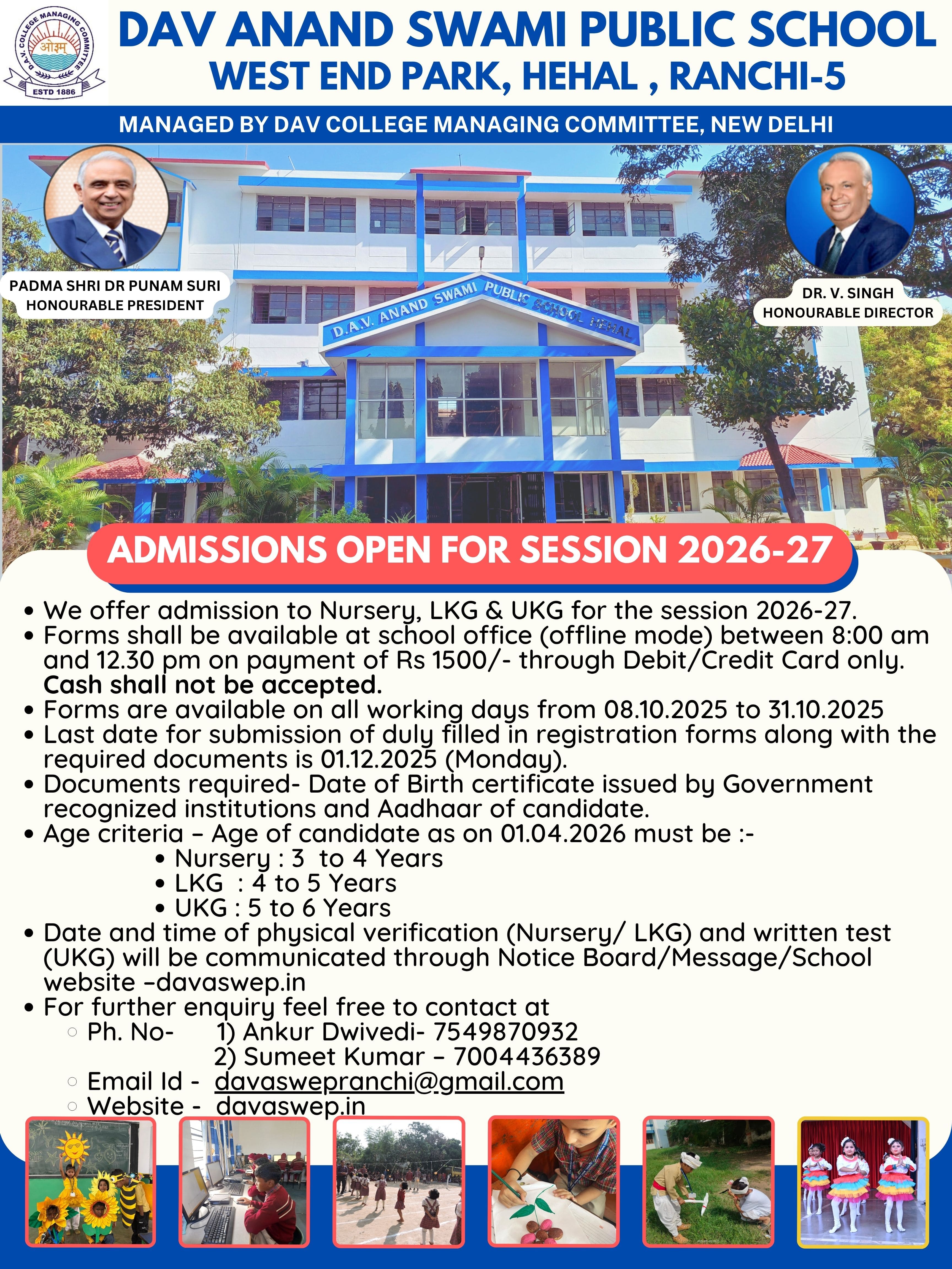 DAV Anand Swami Public School, West End Park, Hehal Ranchi E-mail:- [email protected] Contact- 9262395063 Website- www.davaswep.in